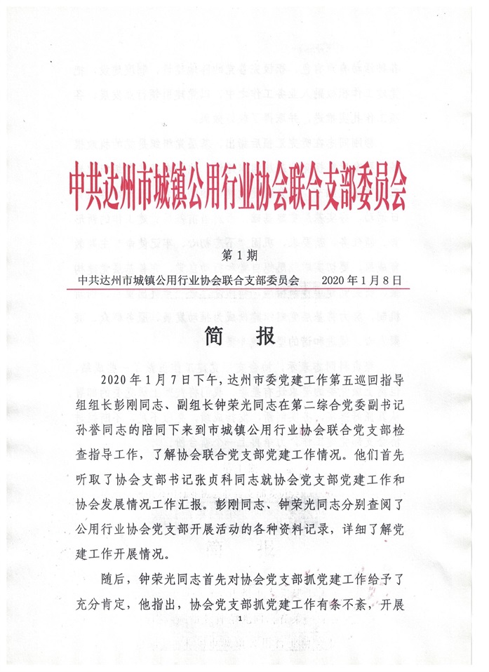 中共達州市城鎮(zhèn)公用行業(yè)協(xié)會聯(lián)合支部委員會2020年第一期簡報
