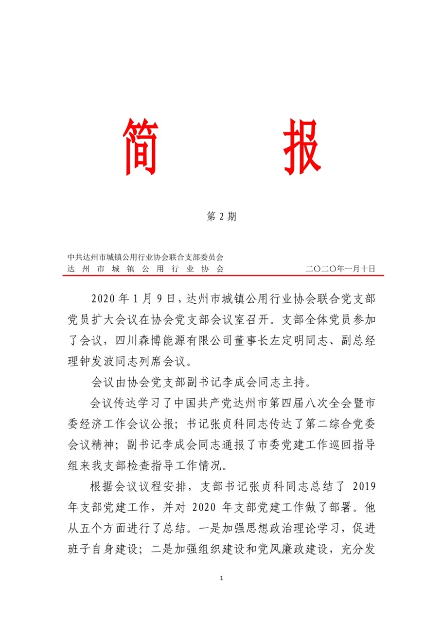中共達州市城鎮(zhèn)公用行業(yè)協(xié)會聯(lián)合支部委員會2020年第一期簡報