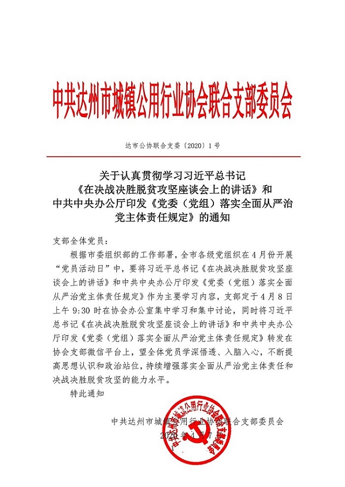 中共達(dá)州市城鎮(zhèn)公用行業(yè)協(xié)會(huì)聯(lián)合支部委員會(huì)2020年第四期簡(jiǎn)報(bào)