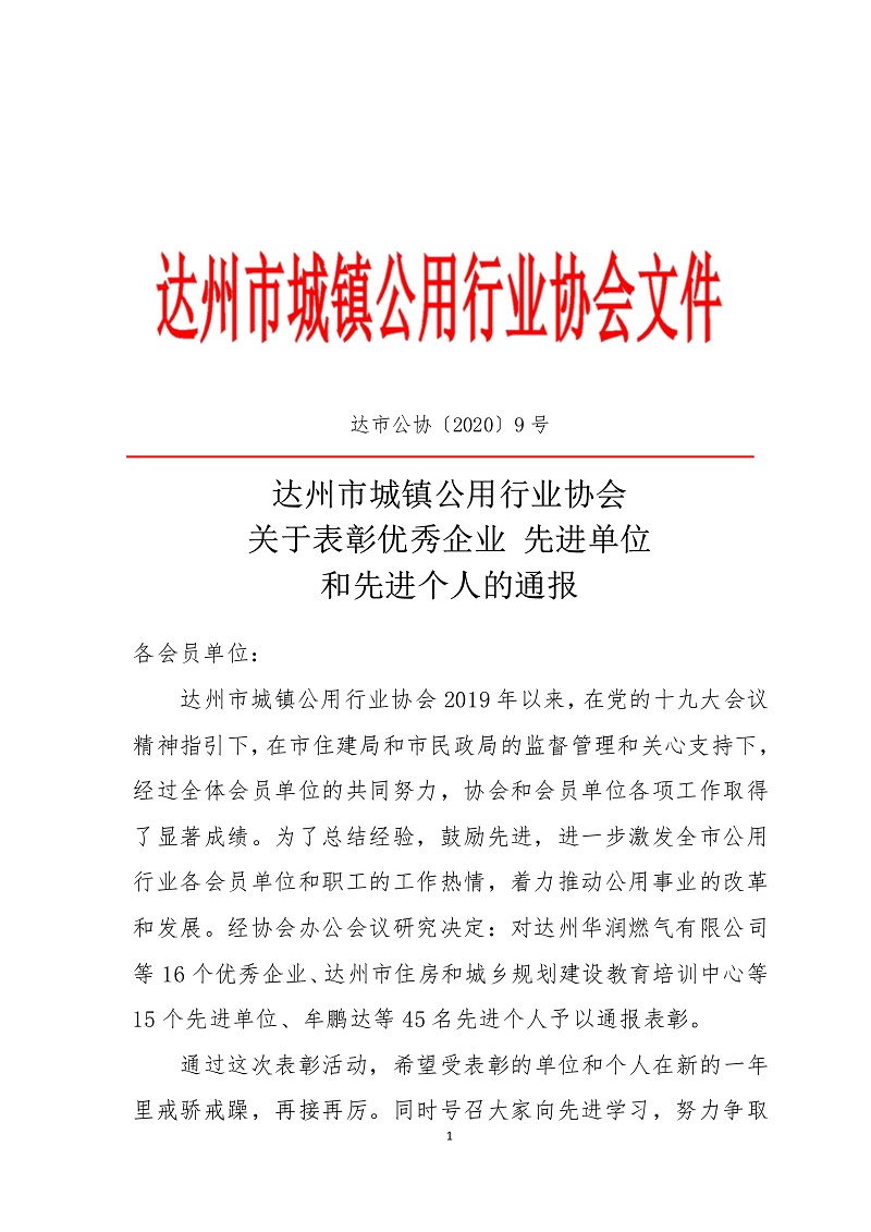 達州市城鎮(zhèn)公用行業(yè)協會2025年第九期簡