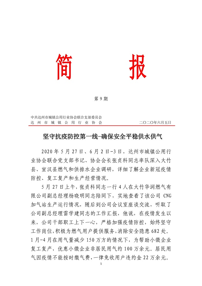 達(dá)州市城鎮(zhèn)公用行業(yè)協(xié)會(huì)2020年第九期簡(jiǎn)報(bào)