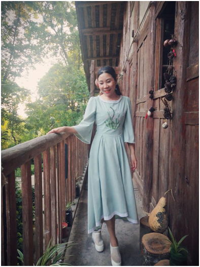 落日余暉下,我們翻越山嶺,落腳于煙霞山的潘家大院。石梯,石階,石柱,青瓦,木門,木樓閣,四方院的上空升騰的炊煙裊裊,映襯著夕陽拉出的一抹抹絢彩,寧靜而美好。院壩中晾曬著咸菜,繡球花兒引得彩蝶翩翩,友好的大橘貓和大黃狗熱情相迎。石階上置放著風(fēng)箱、石磨,我禁不住吸引,立刻去搖起手柄、推起磨來,感受一番農(nóng)家勞作的場景。