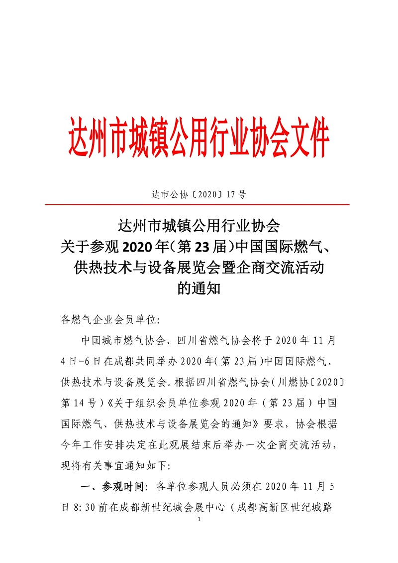 關(guān)于參觀2020年(第23屆)中國(guó)國(guó)際燃?xì)、供熱技術(shù)與設(shè)備展覽會(huì)暨企商交流活動(dòng)的通知
