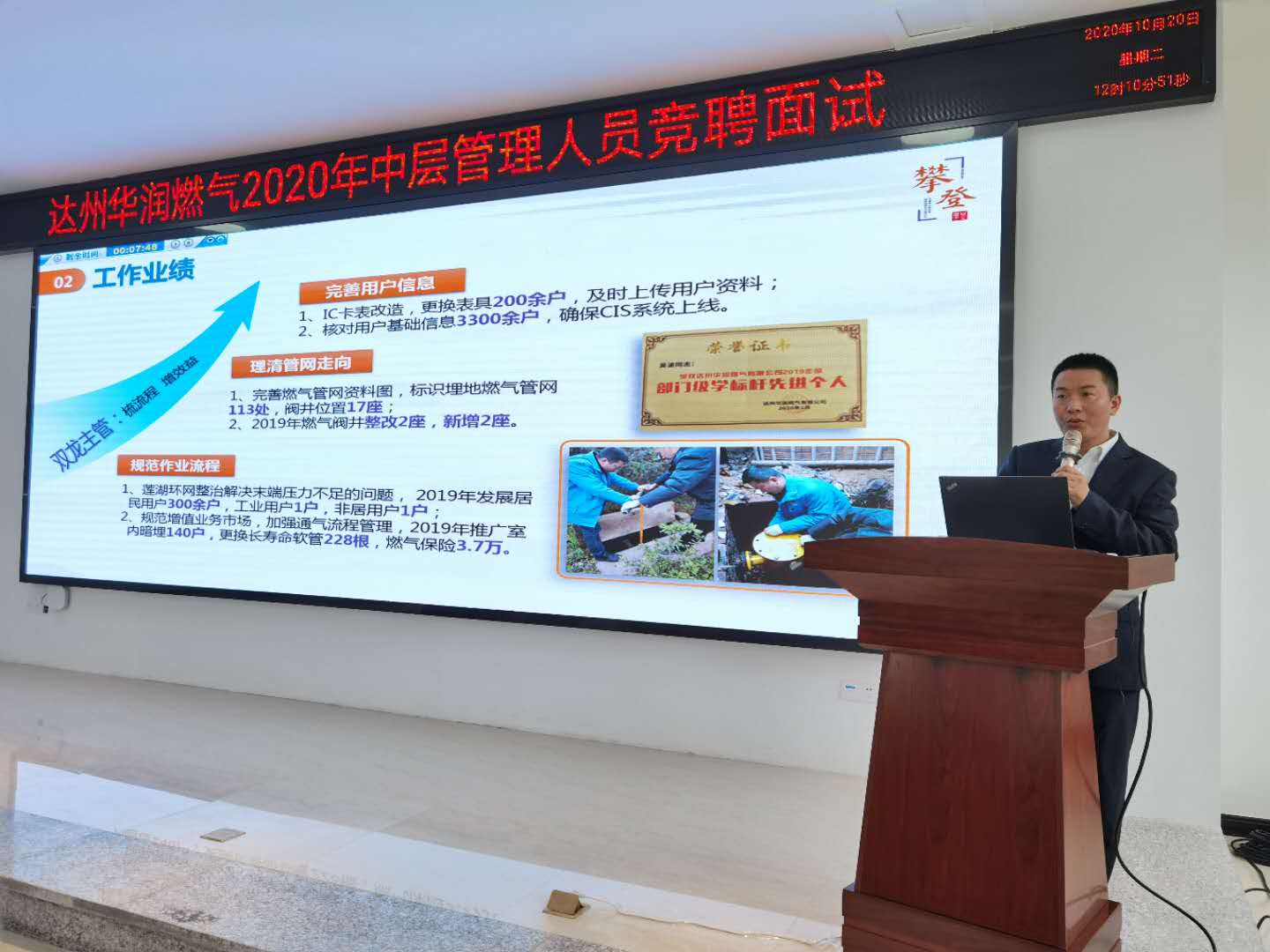 為進一步優(yōu)化人力資源配置,建立“能上能下、能進能出”的用人機制,推進區(qū)域一體化進程,2020年10月20日上午,華潤燃氣達州區(qū)域公司組織召開中層管理人員競聘面試。達州區(qū)域公司高管、特邀評委、競聘候選人、中層及員工代表共計50余人參加,西南大區(qū)人力資源標(biāo)桿工作組負責(zé)具體組織實施。
