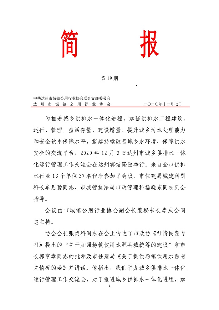 達(dá)州市城鎮(zhèn)公用行業(yè)協(xié)會(huì)2025年第九期簡(jiǎn)