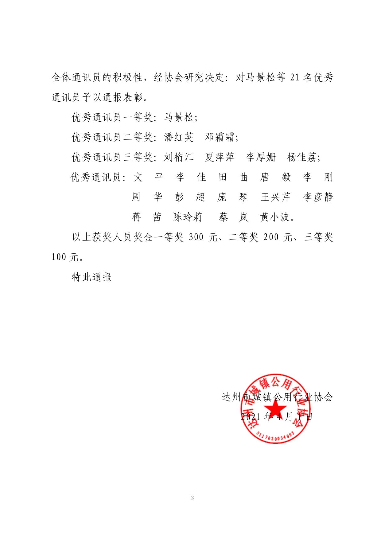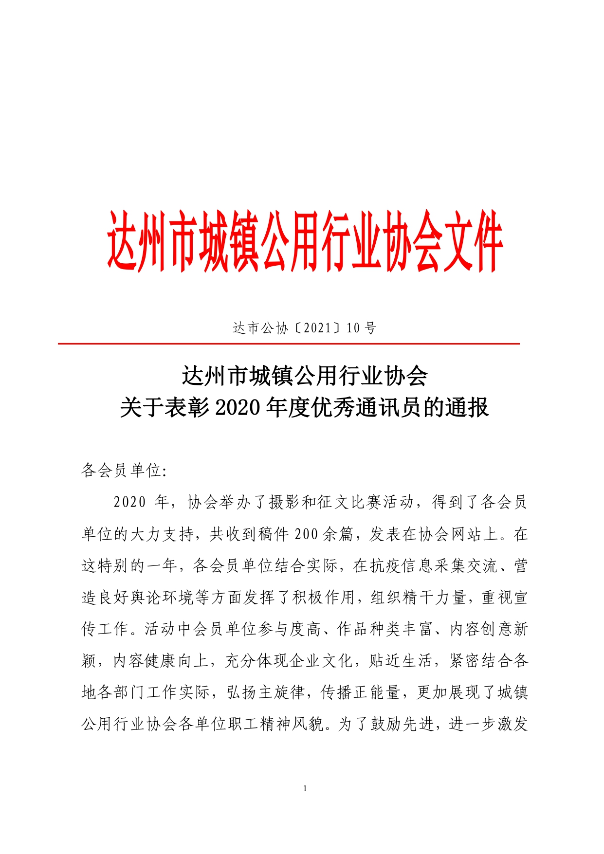 關(guān)于表彰2020年度優(yōu)秀通訊員的通報