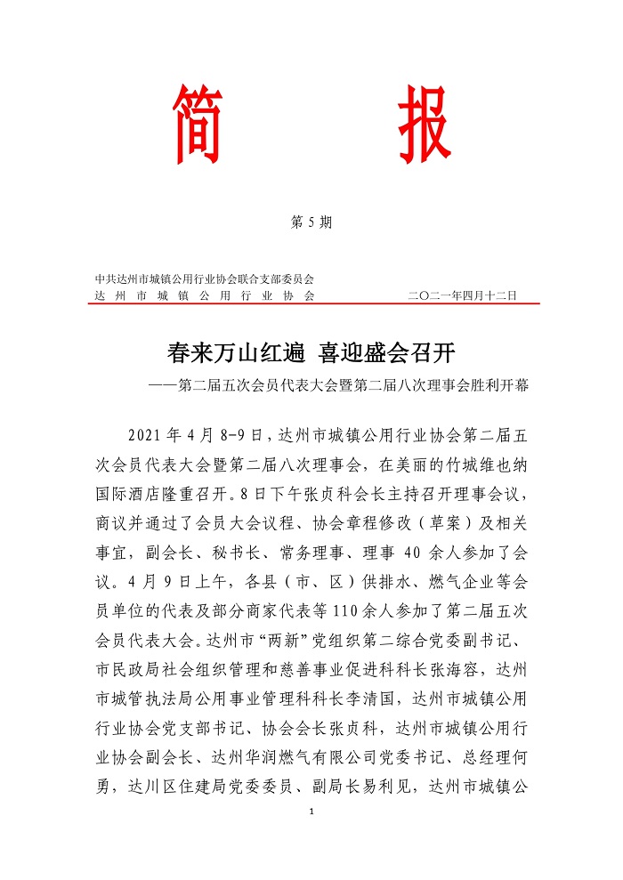 中共達州市城鎮(zhèn)公用行業(yè)協(xié)會聯(lián)合支部委員會2021年第五期簡報