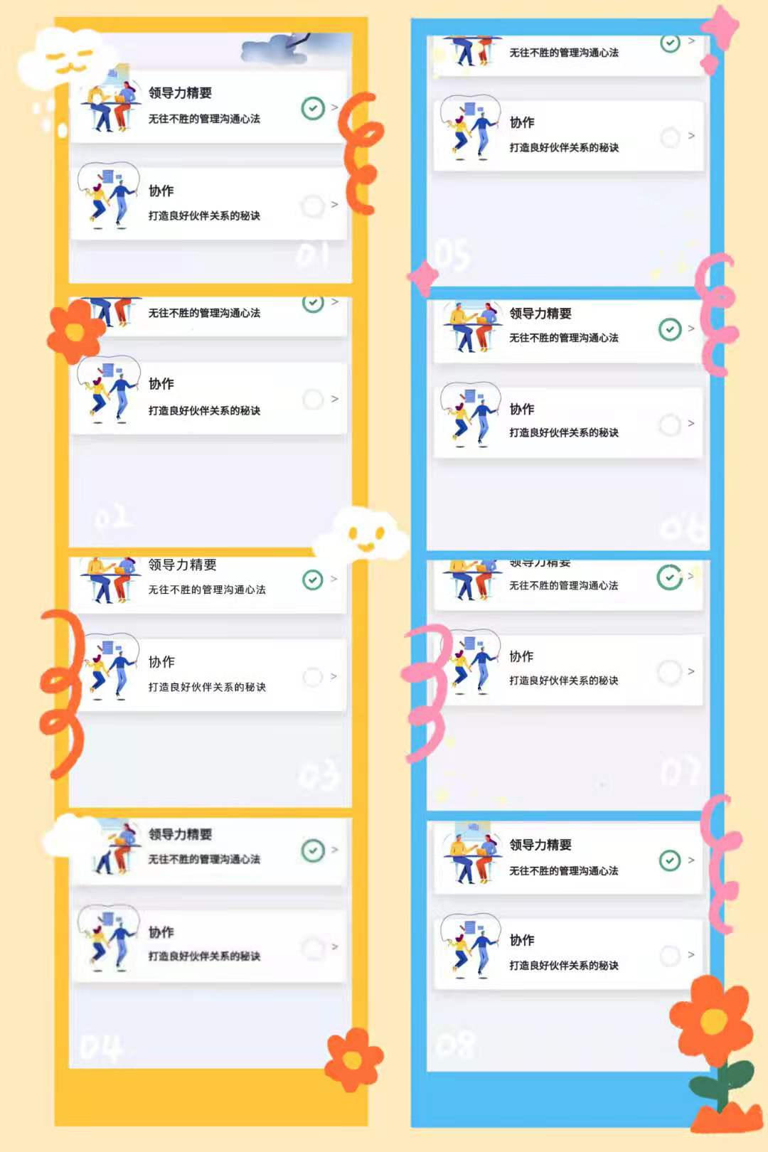 此次輔導(dǎo)項(xiàng)目歷時(shí)6天,整體基于 “測(cè)-學(xué)-練-考-用”的科學(xué)閉環(huán)設(shè)置,來自達(dá)州、大竹、渠縣、通江、開江5家公司的32名優(yōu)秀中層管理者及主管作為學(xué)員體驗(yàn)了一把融合社群互動(dòng)、翻轉(zhuǎn)課堂、即學(xué)即戰(zhàn)、學(xué)以致用的在線碎片化學(xué)習(xí)模式。從最初的團(tuán)隊(duì)展示,到精心準(zhǔn)備每日海報(bào),再到課程打卡、對(duì)答如流、心得分享以及最終激烈研討、高質(zhì)量輸出小組難題的解決案例,大家的學(xué)習(xí)熱情始終高漲。在線課程團(tuán)隊(duì)完成率達(dá)100%,人均學(xué)習(xí)總時(shí)長(zhǎng)215分鐘,遠(yuǎn)高于課程推薦學(xué)習(xí)時(shí)間100分鐘,53%學(xué)員經(jīng)過學(xué)習(xí)獲得了能力等級(jí)提升。