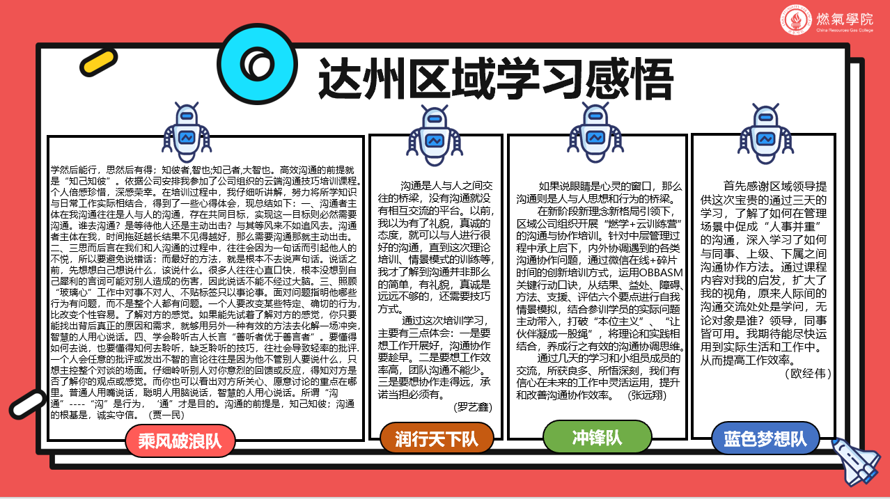 為進(jìn)一步優(yōu)化管理人員能力素質(zhì),推動(dòng)人才梯隊(duì)建設(shè),為公司新一輪發(fā)展提供人才儲(chǔ)備與支持的戰(zhàn)略規(guī)劃,華潤(rùn)燃?xì)膺_(dá)州區(qū)域公司于2021年6月5日-6月10日順利交付“燃學(xué)+云訓(xùn)練營(yíng)”中層管理能力提升之溝通與協(xié)作培訓(xùn)項(xiàng)目,通過采用線上培訓(xùn)管理新形式,精準(zhǔn)提升中層人才質(zhì)量,助力企業(yè)人才培養(yǎng)與發(fā)展。