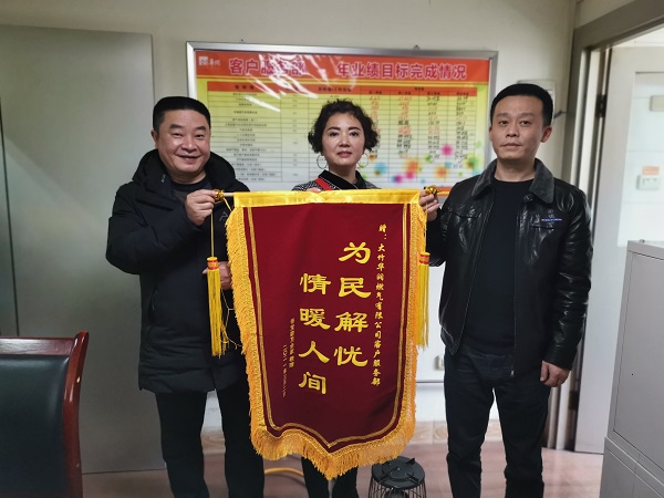 3月21日,張寶碧女士手持一面“為民解憂,情暖人間”的錦旗走進(jìn)了公司客戶服務(wù)部,她說(shuō),她要將錦旗送給公司,以回饋公司對(duì)她家的幫助。