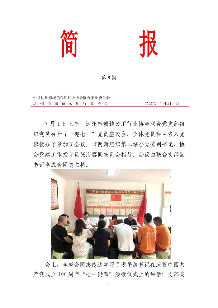 達州市城鎮(zhèn)公用行業(yè)協(xié)會2021年第九期簡報