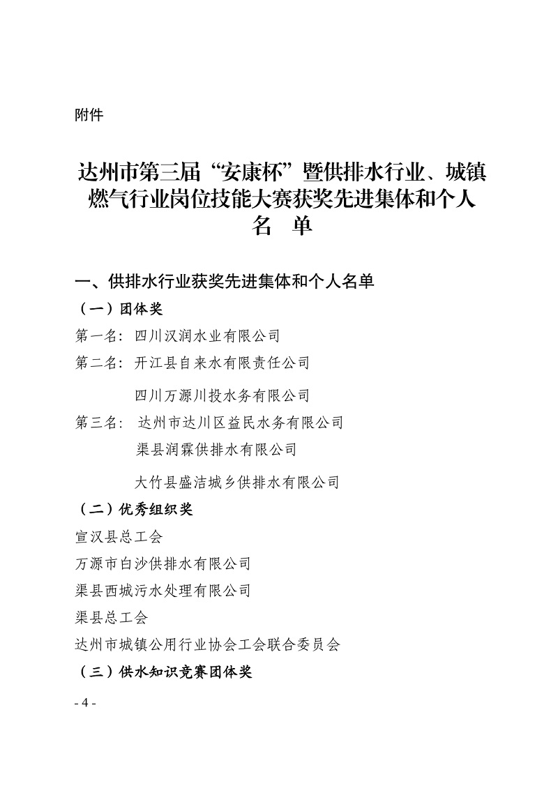 達(dá)州市總工會(huì)關(guān)于開展達(dá)州市供排水行業(yè)第三屆“安康杯”暨“漢潤(rùn)杯”崗位技能大賽的通知