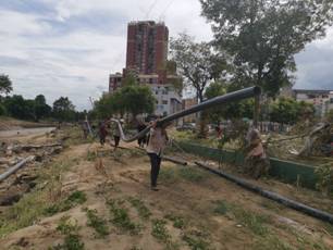 及時恢復生產(chǎn),確保供排水安全。一是各水廠根據(jù)災后情況及時調(diào)整制水方案,加大水質(zhì)檢測頻率,確保供水水質(zhì)安全;二是緊急調(diào)集搶修隊伍加班加點搶修受損供水管網(wǎng),先后累計調(diào)集搶修人員200余人、搶修車輛30余輛次、調(diào)運各類口徑管道1000余米、各類管件數(shù)百個,截至10日12點所有受損管道全部搶修完畢并恢復正常供水;三是對全城重點內(nèi)澇嚴重地區(qū)排水井進行拉網(wǎng)式巡查,清淤保暢、設置安全警戒圍欄,確保排水及行人安全;四是出動30余人次對城區(qū)部分小區(qū)的二次供水泵房及設施進行檢查,確保二次供水安全。