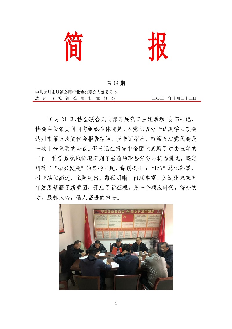 達(dá)州市城鎮(zhèn)公用行業(yè)協(xié)會2021年第十四期簡報(bào)