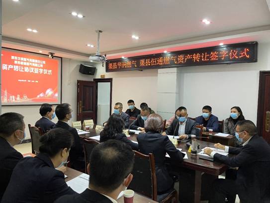 10月28日上午,渠縣華潤燃氣有限責任公司與渠縣恒通燃氣有限公司舉行簽約儀式,雙方代表簽署資產(chǎn)轉(zhuǎn)讓協(xié)議。