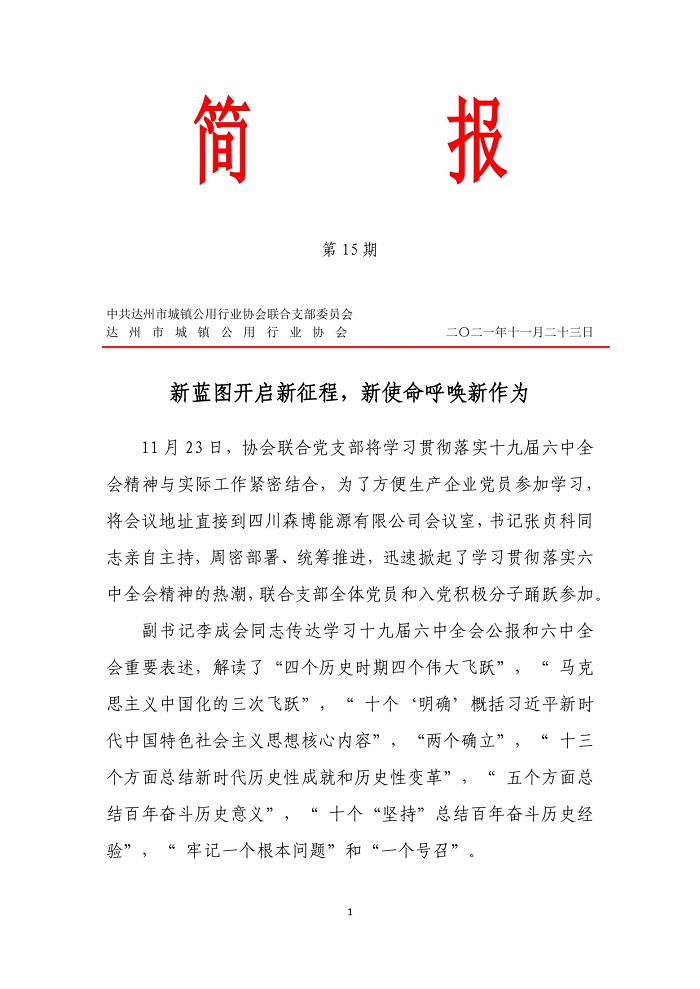 中共達州市城鎮(zhèn)公用行業(yè)協(xié)會聯(lián)合支部委員會2021年第十五期簡報