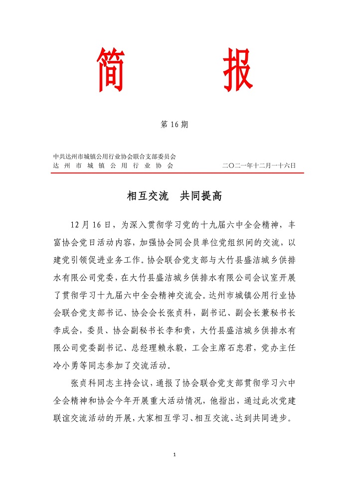 達(dá)州市城鎮(zhèn)公用行業(yè)協(xié)會(huì)2021年第十六期簡(jiǎn)報(bào)