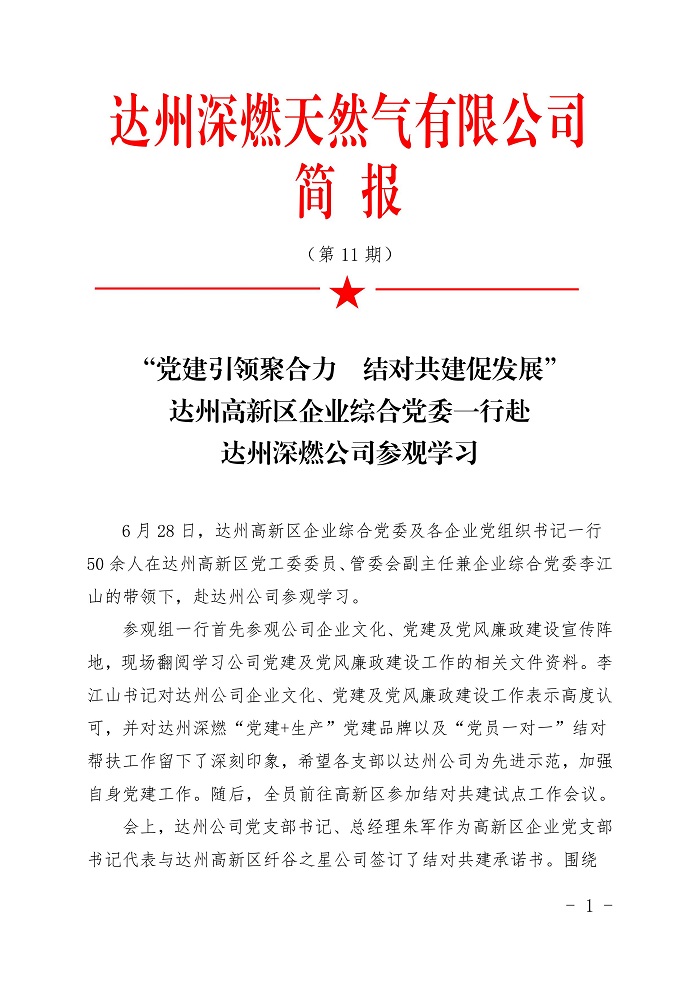 “黨建引領(lǐng)聚合力 結(jié)對共建促發(fā)展”達州高新區(qū)企業(yè)綜合黨委一行赴達州深燃公司參觀學習