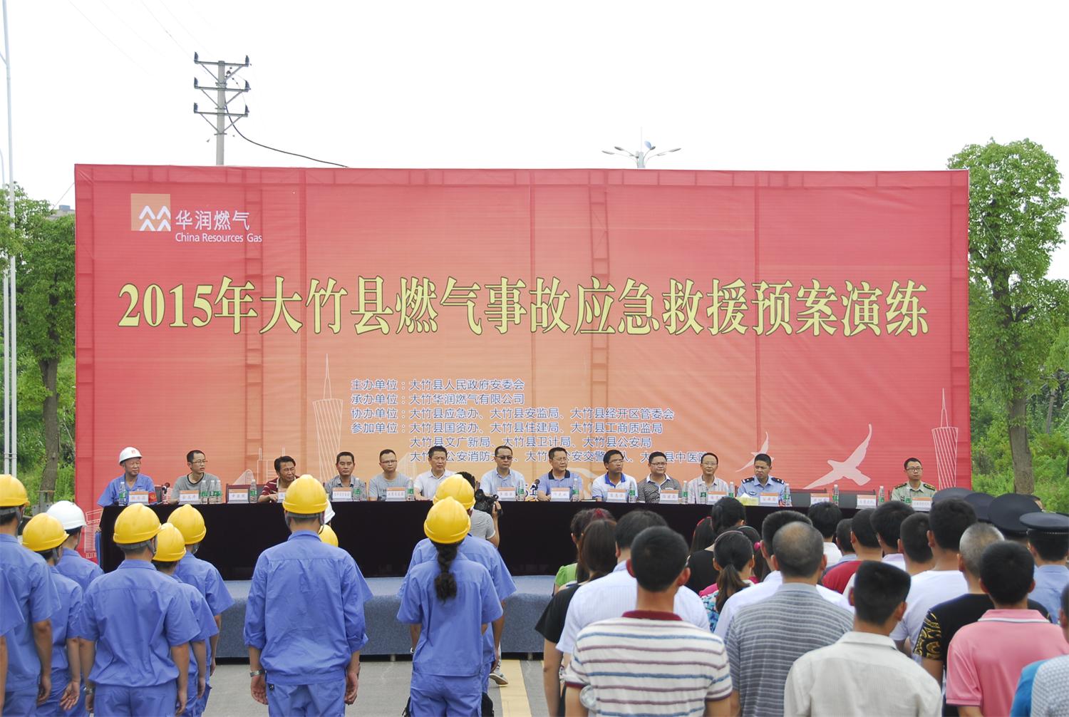 6月26日,大竹華潤燃氣有限公司在經(jīng)濟開發(fā)區(qū)舉行2015年大竹縣燃氣管道事故應急救援預案演練活動,共計150余人參加。在城市燃氣主管道被第三方施工破壞、巡線人員受傷、大量燃氣泄漏并燃燒的模擬場景下,公司8個救援小組、110、120、消防、交警等救援力量及時響應、迅速出動、搶救傷員、封鎖現(xiàn)場、疏散警戒、排除險情、修復受損天然氣管道并恢復正常供氣。各救援組分工明確、團結(jié)協(xié)作,成功完成了此次演習。