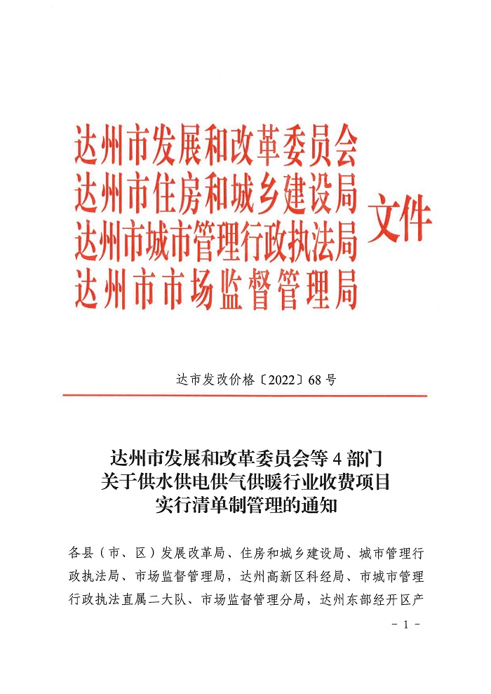關(guān)于供水供電供氣供暖行業(yè)收費(fèi)項(xiàng)目實(shí)行清單制管理的通知