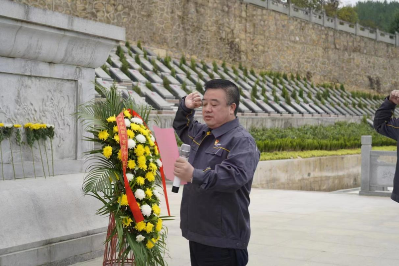 上午10時(shí)許,全體支部黨員首先來到萬源革命烈士陵園。天地英雄氣,千秋尚凜然。蒼松翠柏掩映的萬源革命烈士陵園莊嚴(yán)肅穆,革命烈士紀(jì)念碑巍然聳立。在《獻(xiàn)花曲》的深情旋律中,該公司黨委書記、總經(jīng)理鄧昌權(quán),黨委副書記、董事長唐軍,黨委委員、工會主席徐旭,綜合管理黨支部書記李旭,客戶服務(wù)黨支部書記石代毅,萬源黨支部書記吳桂林向革命烈士敬獻(xiàn)花籃,表達(dá)對革命先烈的感恩和崇敬之情。隨后,全體黨員懷著敬仰之情向烈士墓碑敬獻(xiàn)鮮花,默哀一分鐘。在烈士紀(jì)念碑前,全體黨員在書記鄧昌權(quán)的帶領(lǐng)下,舉行了莊重的重溫入黨誓詞儀式。