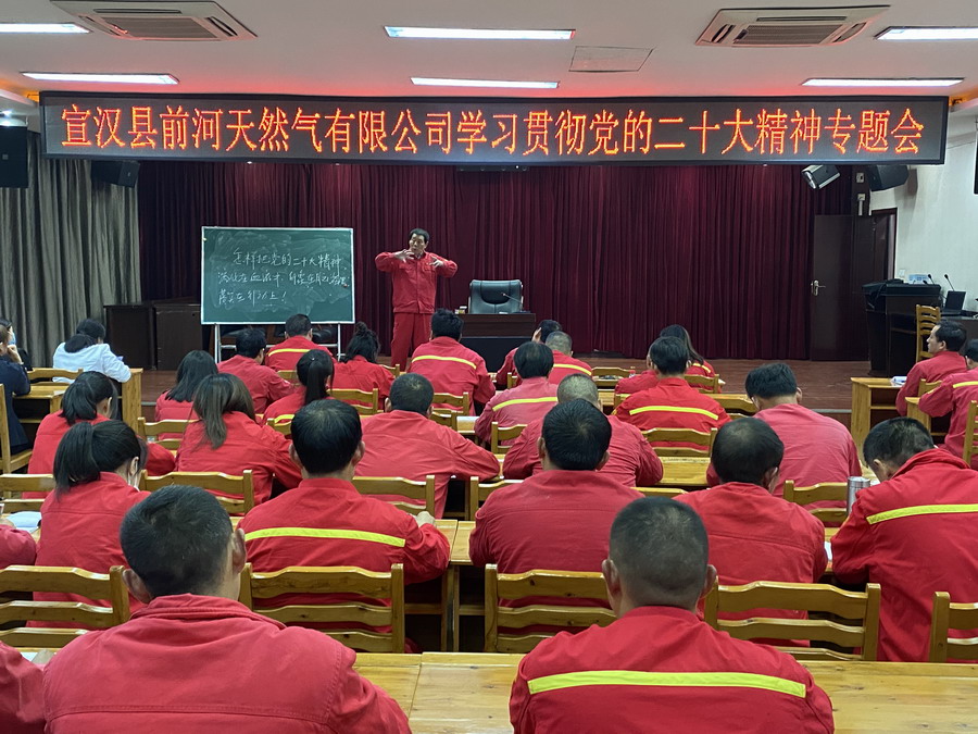 隨著中國(guó)共產(chǎn)黨第二十次全國(guó)代表大會(huì)在北京勝利閉幕,宣漢縣前河天然氣有限公司第一時(shí)間,于2022年10月23日晚組織全體職工召開了學(xué)習(xí)貫徹黨的二十大精神專題會(huì)。