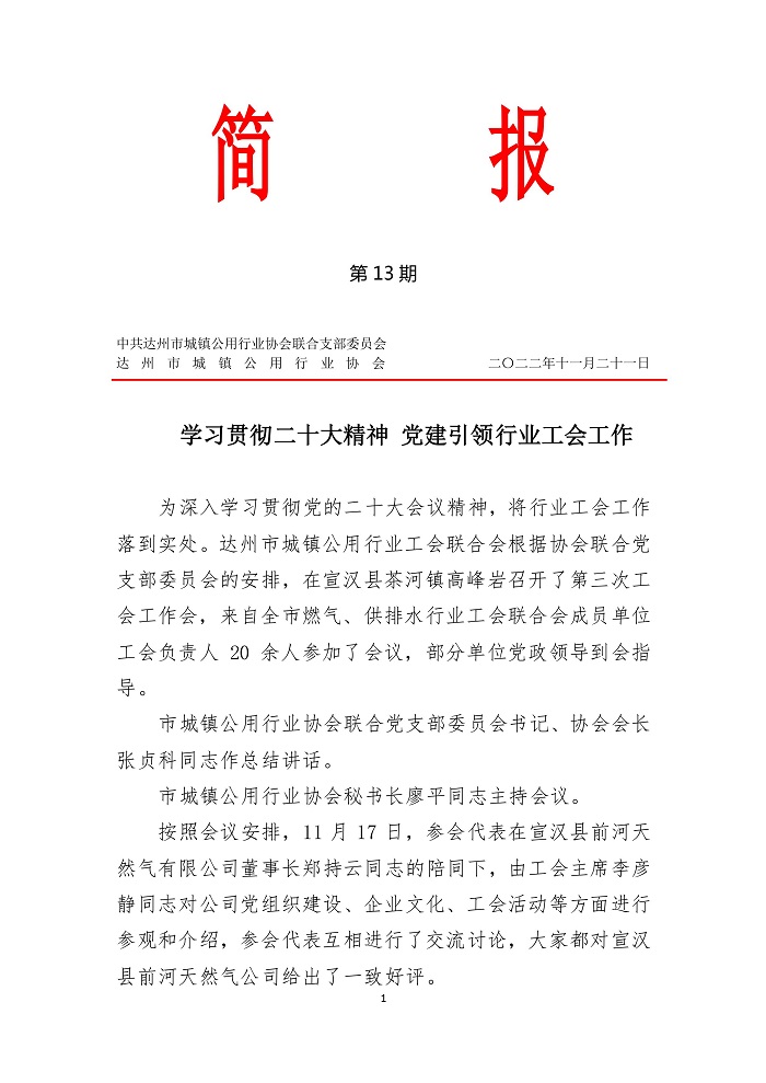 達(dá)州市城鎮(zhèn)公用行業(yè)協(xié)會2022年第十三期簡報