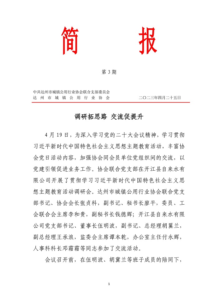 達(dá)州市城鎮(zhèn)公用行業(yè)協(xié)會(huì)2023年第二期簡(jiǎn)報(bào)