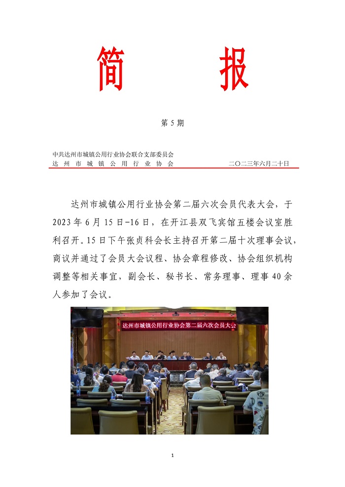 達(dá)州市城鎮(zhèn)公用行業(yè)協(xié)會2023年第五期簡報