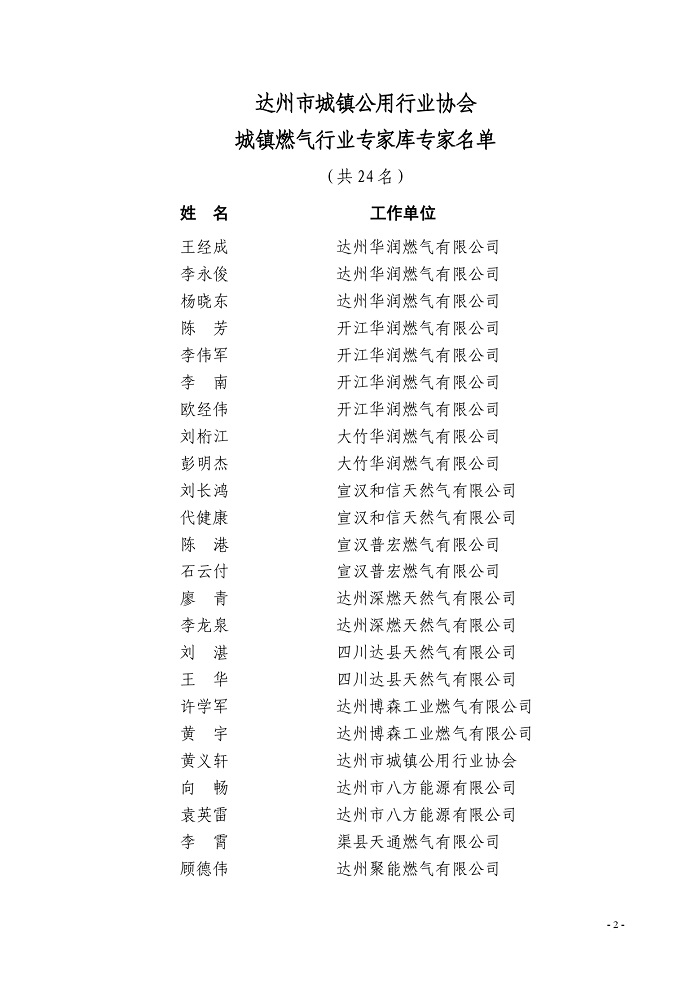 達(dá)州市城鎮(zhèn)公用行業(yè)協(xié)會(huì)關(guān)于聘用城鎮(zhèn)燃?xì)鈱<业耐ㄖ?