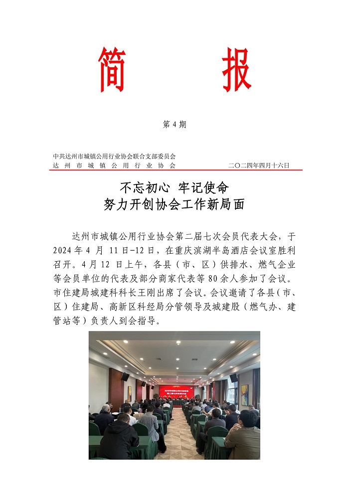 達州市城鎮(zhèn)公用行業(yè)協(xié)會2024年第四期簡報