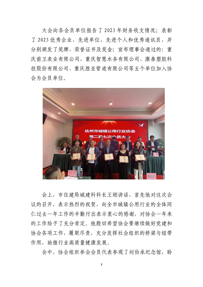 達州市城鎮(zhèn)公用行業(yè)協(xié)會2024年第三期簡報