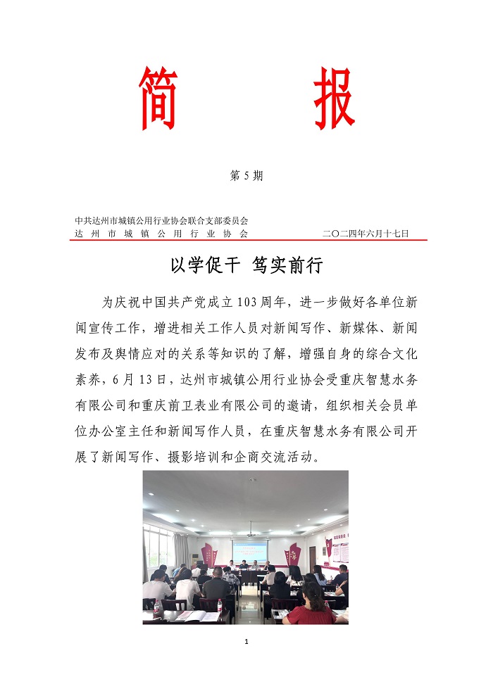 中共達(dá)州市城鎮(zhèn)公用行業(yè)協(xié)會(huì)聯(lián)合支部委員會(huì)2024年第五期簡(jiǎn)報(bào)