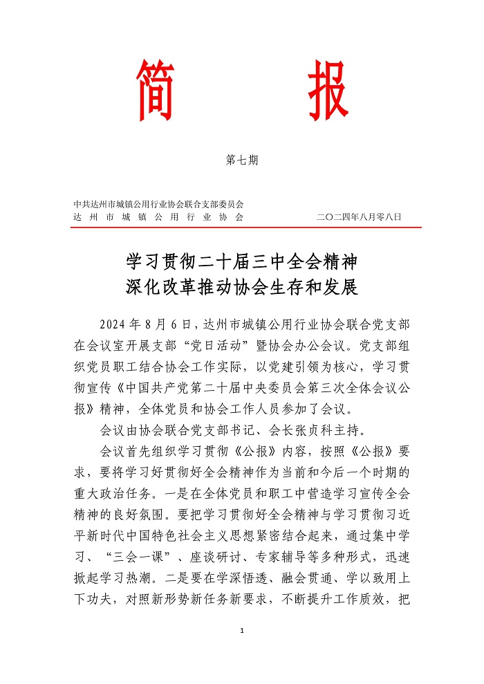 達(dá)州市城鎮(zhèn)公用行業(yè)協(xié)會2024年第七期簡報