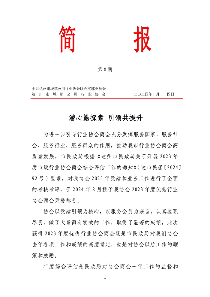 達州市城鎮(zhèn)公用行業(yè)協(xié)會2024年第八期簡報