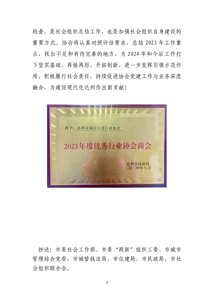 達州市城鎮(zhèn)公用行業(yè)協(xié)會2024年第九期簡報