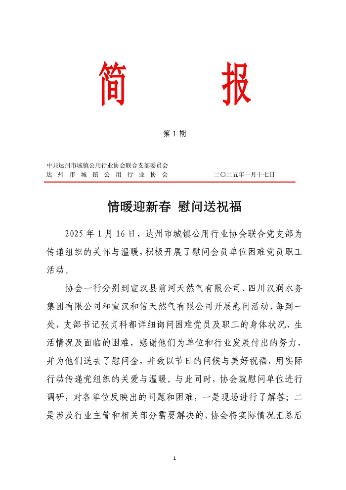 中共達(dá)州市城鎮(zhèn)公用行業(yè)協(xié)會(huì)聯(lián)合支部委員會(huì)2025年第一期簡報(bào)
