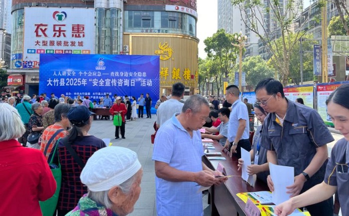 6月16日,大竹縣安委會在煌歌廣場組織開展2025年“安全宣傳咨詢?nèi)铡被顒樱瑖@“人人講安全、個個會應(yīng)急---查找身邊安全隱患”主題,通過多樣化的宣傳形式,向廣大群眾普及安全知識,提升全民安全意識和應(yīng)急能力。公司積極承擔(dān)燃?xì)獍踩麄髫?zé)任,為市民普及用氣安全知識。