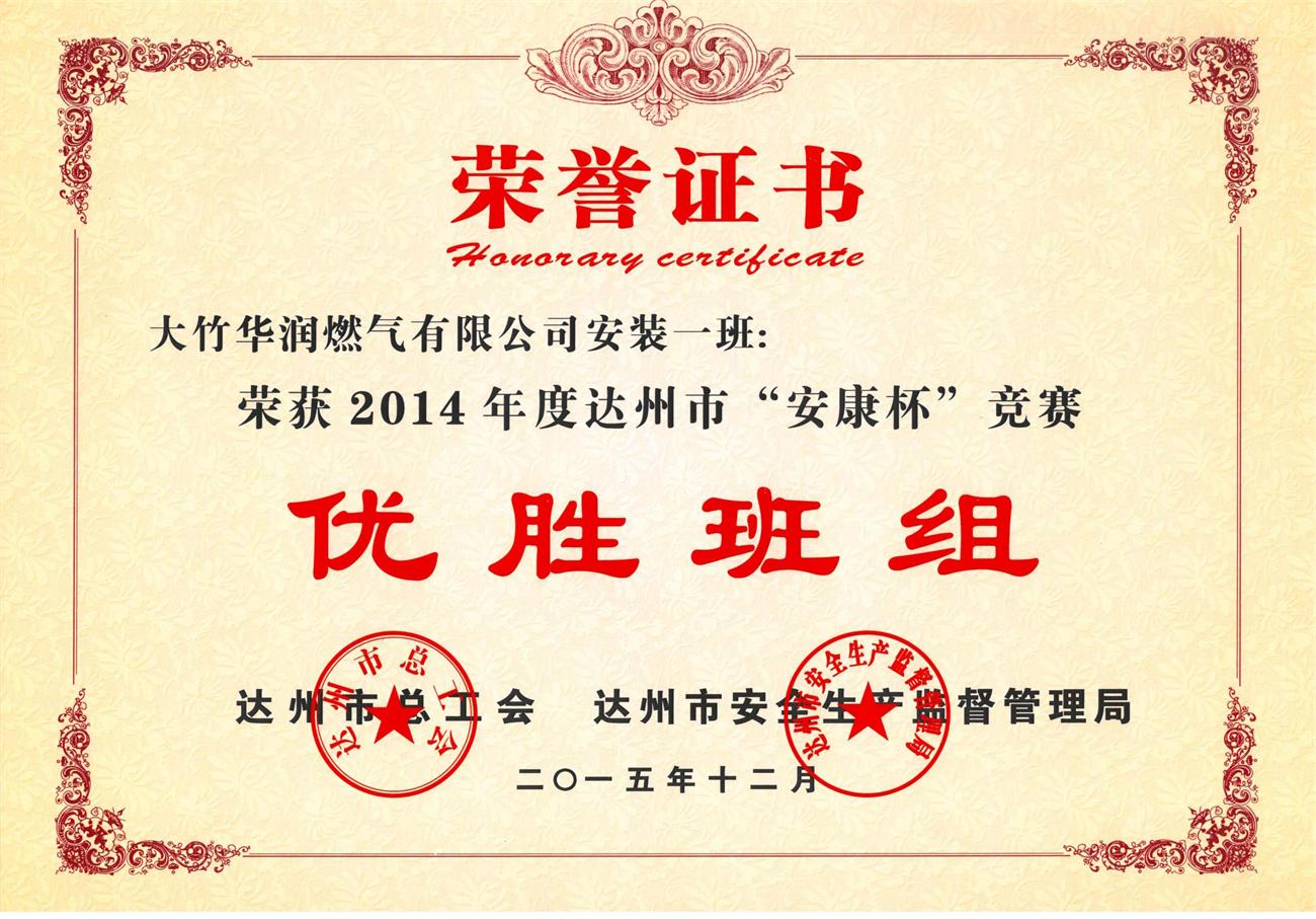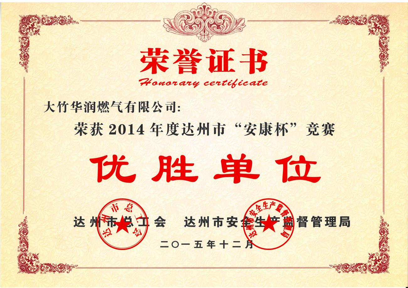 近日,從達(dá)州市總工會(huì)及達(dá)州市安全生產(chǎn)監(jiān)督管理局傳來喜訊,大竹華潤(rùn)燃?xì)庥邢薰驹?FONT face=Calibri>2015年度達(dá)州市“安康杯”競(jìng)賽活動(dòng)中取得優(yōu)異成績(jī)。