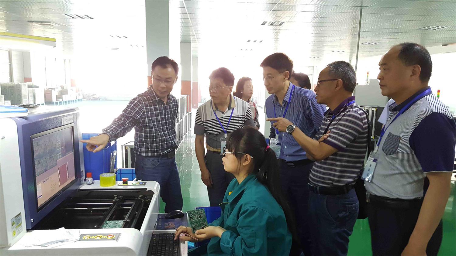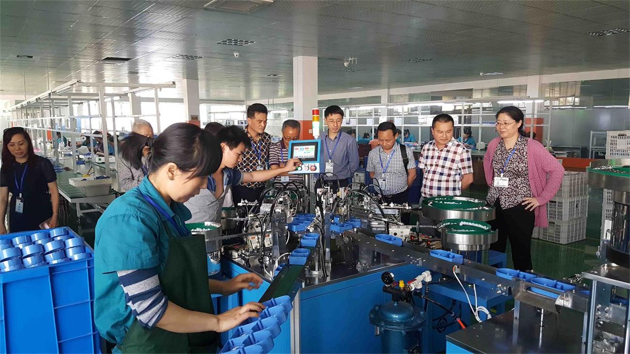 (輕松表計(jì)陳總帶領(lǐng)張貞科會(huì)長(zhǎng)一行參觀生產(chǎn)基地)