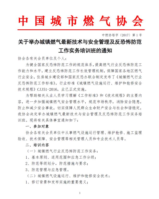 中國(guó)城市燃?xì)鈪f(xié)會(huì)關(guān)于城鎮(zhèn)燃?xì)庾钚录夹g(shù)與安全管理及反恐怖防范工作實(shí)務(wù)培訓(xùn)班