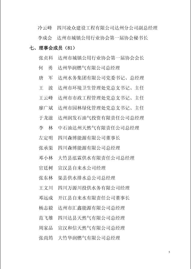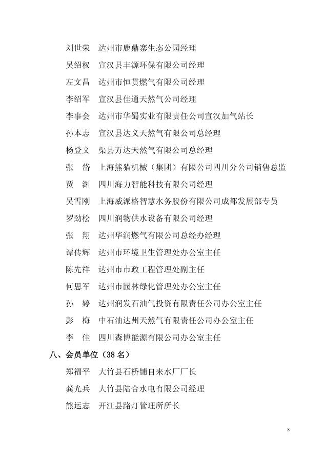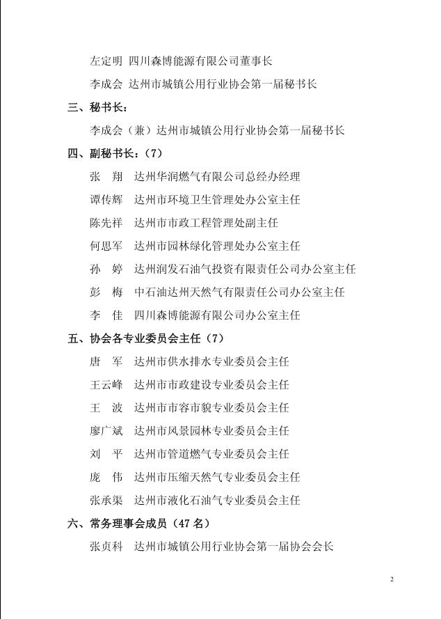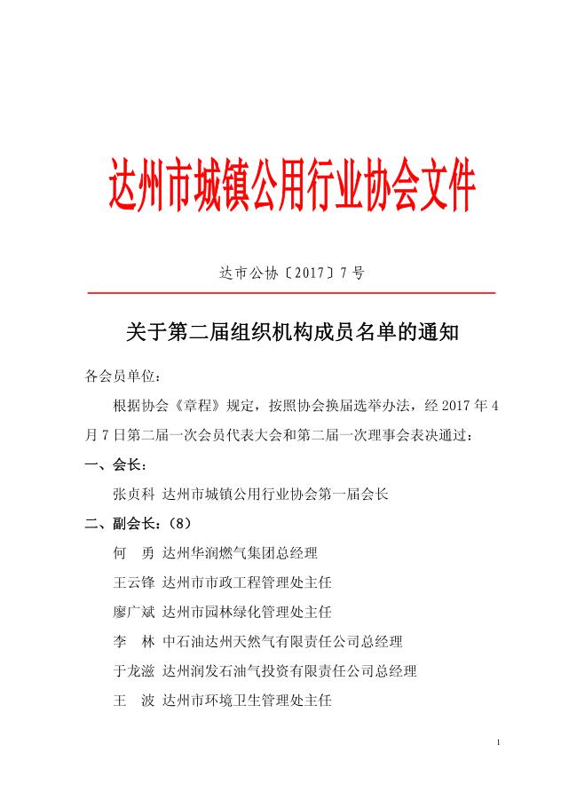 達(dá)州市城鎮(zhèn)公用行業(yè)協(xié)會(huì)關(guān)于二屆組織機(jī)構(gòu)成員名單的通知