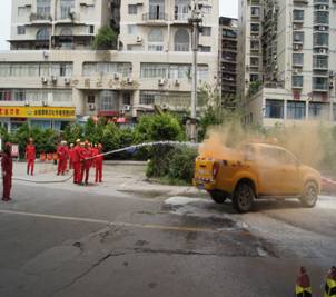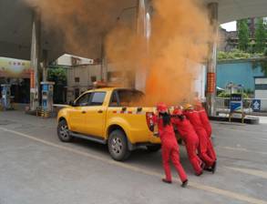 4月21日下午,2017年安全生產(chǎn)應(yīng)急演練模擬在CNG加氣站內(nèi)舉行,一輛正常加氣的私家車突然起火自燃,導(dǎo)致私家車著火燃燒,短短幾分鐘內(nèi)整個加氣站濃煙彌漫,情況十分危急。加氣站員工在第一時間呼叫119,并立即啟動《天華加氣站搶險應(yīng)急預(yù)案》。當(dāng)班班組發(fā)現(xiàn)突發(fā)著火情況,立即疏散站內(nèi)所有加氣車輛,同時把著火車輛推出加氣區(qū)設(shè)立“警戒區(qū)”,當(dāng)班班組進行初期干粉滅火。天華加氣站應(yīng)急搶險隊員趕到后,立即展開消防水滅火,搶險隊員根據(jù)現(xiàn)場情況,首先利用消防水槍對私家車燃燒部位進行覆蓋撲救,對車輛氣罐部位作降溫處理,然后用消防水槍對著出事車輛附近的天然氣濃度進行稀釋。經(jīng)過數(shù)分鐘的有效撲救,險情得以控制,最終控制并排除了險情,應(yīng)急演練圓滿結(jié)束。