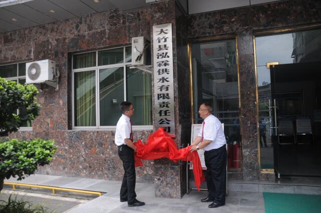 泓霖供水公司舉行揭牌儀式。6月8日,大竹縣泓霖供水有限責(zé)任公司舉行揭牌儀式,標(biāo)志著竹城供水事業(yè)翻開(kāi)嶄新的一頁(yè)。公司黨委書(shū)記、總經(jīng)理鄧小林,黨委副書(shū)記、紀(jì)委書(shū)記、工會(huì)主席王文友為新公司揭牌,公司領(lǐng)導(dǎo)班子成員及中層干部20余人參加揭牌儀式。