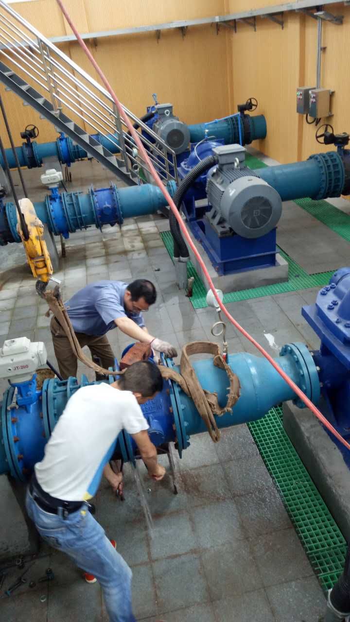 泓霖供水公司竹陽水廠維修電機保供水。7月20日上午11時,竹陽水廠機房工作人員上報,水廠75KW水泵運行后,與供水管道連接的大小頭管件漏水嚴重,接報后,公司立即組織機修人員前往檢查維修。