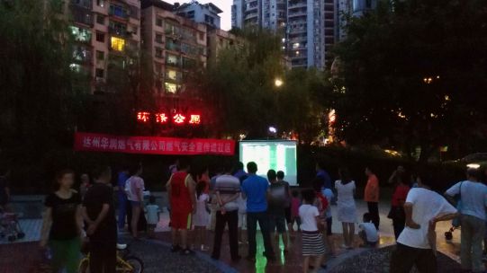 當(dāng)晚8點(diǎn),濱河路麗江明珠一帶華燈初放,休閑娛樂的市民川流不息。達(dá)州華潤(rùn)燃?xì)饪偨?jīng)理何勇帶領(lǐng)安全技術(shù)部等部門員工,在麗江明珠旁市民平時(shí)跳舞的小廣場(chǎng)拉好橫幅、搭好工作臺(tái)、接好電源、架好投影機(jī)、活動(dòng)幕布,播放了幾段重特大燃?xì)馐鹿拾咐曨l,立即吸引了許多市民,大家紛紛圍攏過來駐足觀看。健民路社區(qū)岳書記、公司總經(jīng)理何勇、常務(wù)副總余志平抓住時(shí)機(jī),分別就開展燃?xì)獍踩麄鬟M(jìn)社區(qū)活動(dòng)的目的意義、公司企業(yè)文化、安全檢查要求等向市民作了簡(jiǎn)短講話。隨即,公司員工播放了祁縣“6.13”重大事故等警示教育片、華潤(rùn)集團(tuán)企業(yè)文化宣傳片、居民用戶安全用氣、華潤(rùn)百尊燃?xì)饩、燃(xì)獗kU(xiǎn)介紹等視頻。