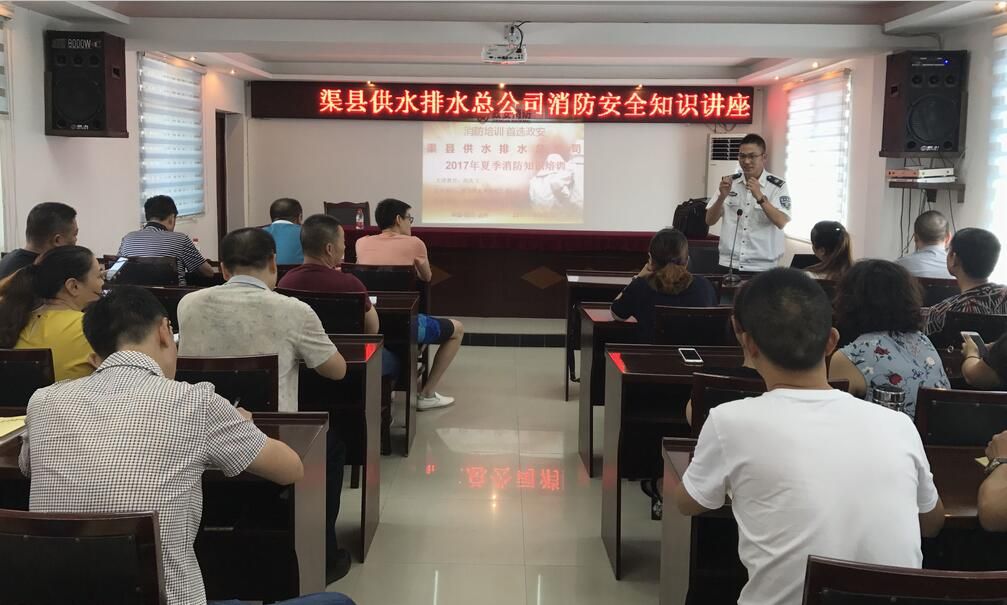 為加強安全生產工作,強化安全意識和提升管理水平,8月17日上午,渠縣供水排水總公司邀請了;泛拖腊踩矫娴膶<襾硭九e辦危化品管理和消防安全知識講座。