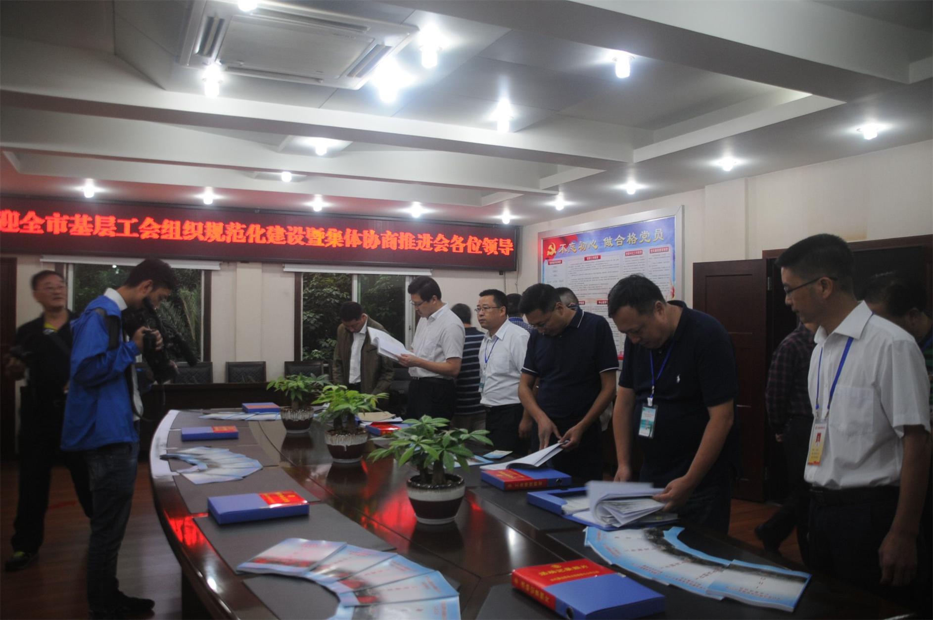 泓霖供水公司開展全市基層工會(huì)組織規(guī)范化建設(shè)暨集體協(xié)商推進(jìn)會(huì)示范點(diǎn)迎檢工作。9月19日至20日,達(dá)州市基層工會(huì)組織規(guī)范化建設(shè)暨集體協(xié)商推進(jìn)會(huì)在我縣隆重舉行,泓霖供水公司工會(huì)作為我縣國有企業(yè)基層工會(huì)代表被確定為此次推進(jìn)會(huì)示范點(diǎn)。9月19日下午,市總工會(huì)黨組書記、常務(wù)副主席常榮,市總班子成員、各縣(市區(qū))總工會(huì)負(fù)責(zé)人、市屬產(chǎn)(行)業(yè)工會(huì)負(fù)責(zé)人以及部分企事業(yè)單位工會(huì)組織代表約80余人在縣委常委、總工會(huì)主席鄭河川陪同下對(duì)供水公司工會(huì)示范點(diǎn)進(jìn)行了參觀指導(dǎo)。