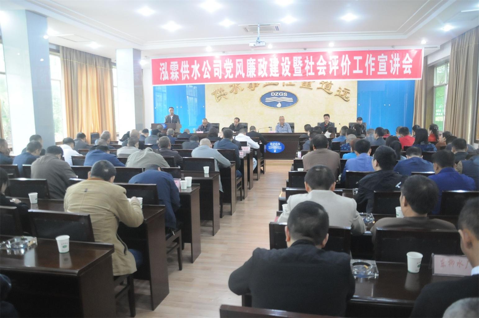 泓霖供水公司扎實開展黨風廉政建設社會評價工作宣傳工作。為進一步做好黨風廉政建設宣傳工作,促進公司黨風廉政建設社會評價工作提檔升位,10月12日上午,公司組織全體職工在公司大會議室召開了黨風廉政建設暨社會評價工作宣講會,結合公司實際扎實開展黨風廉政建設宣傳工作。
