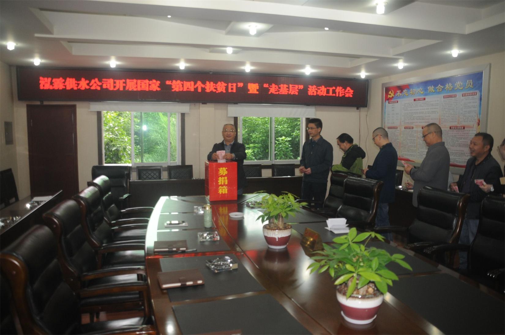 當天,公司組織中層以上干部20余人召開了國家“第四個扶貧日”暨“走基層”工作會,認真?zhèn)鬟_貫徹落實國家及省市縣相關扶貧工作精神與要求。會議期間進行了扶貧募捐活動,公司黨委書記、總經(jīng)理鄧小林同志帶頭捐款,廣大黨員、干部積極參與,現(xiàn)場共計捐款3500元。會后,公司廣泛動員廣大職工奉獻愛心進行捐款,共計捐款3000余元,此次募捐所有捐款均將全部上繳我縣“精準扶貧”專用賬戶。